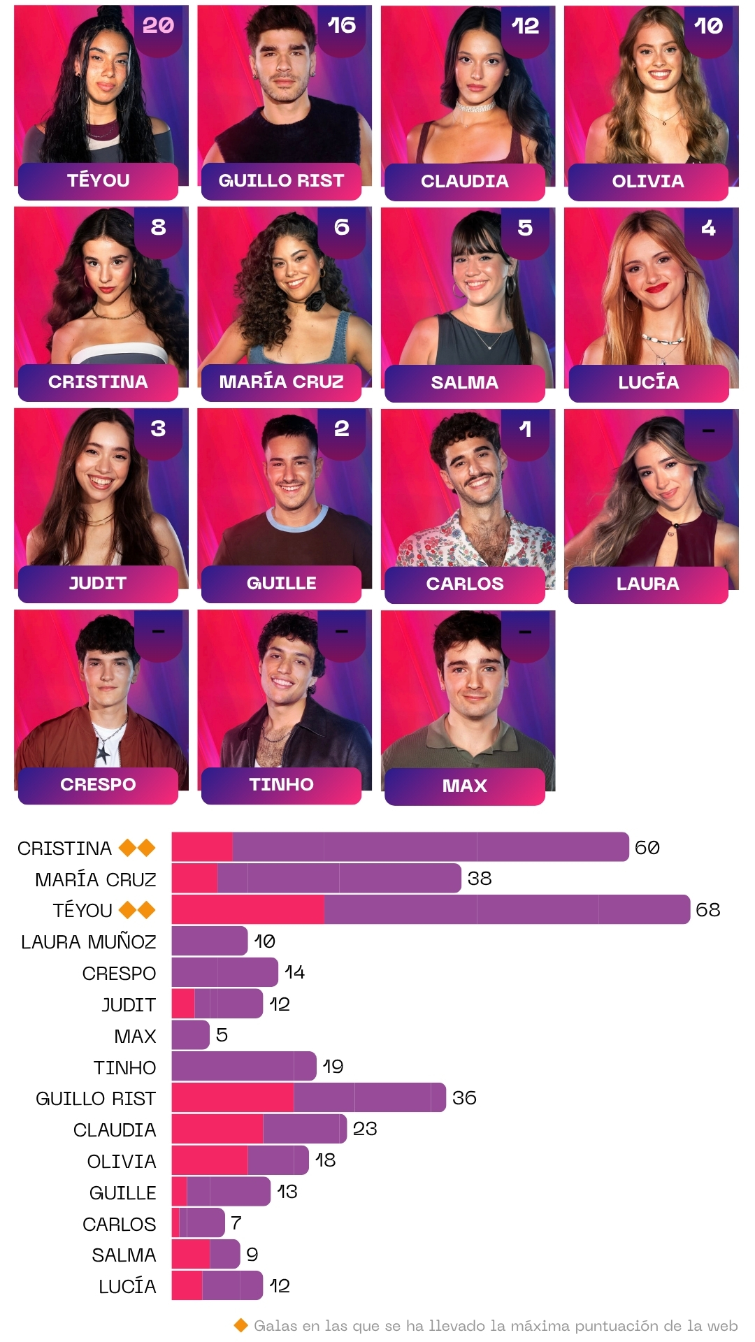 A pesar de que la semana parecía estar beneficiando a Salma, a la que se veía más cómoda con su canción, performance y desarrollo del trabajo en general, el buen rollo de Max con sus compañeros pareció acumular más votos durante la semana. Una estrategia, de “caer mejor”, que veremos por cuanto tiempo lo mantiene en la Academia con el tiempo, porque puede terminar siendo muy peligroso de aquí a un mes de cara a la opinión del público.