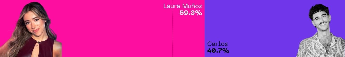 El diverío de Laura Muñoz y su mayor rango vocal su impusieron a Carlos finalmente, que como digo, no jugó una estrategia especialmente inteligente. Sí que me imaginaba unos porcentajes más igualados -aunque Chenoa hablara de que estaban muy cerca (son casi 20 puntos de distancia).