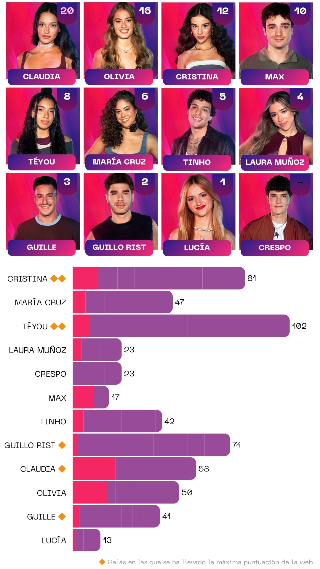 Él, no me entendáis mal, no hizo tampoco un mal trabajo, es simplemente que estaba mucho más desconectado que ella. Ella estaba más frente al público y él frente a profesores y jurado. Había en Guille algo de actitud de concursante de talent show y no tanto de artista.